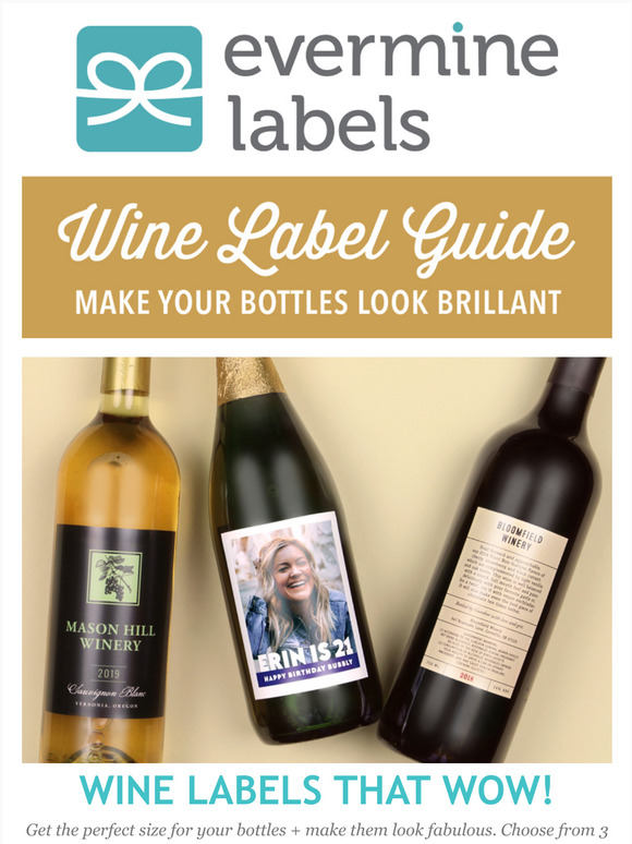 Wine Labels - Blank or Custom Printed | Avery.com Our printable wine bottle labels come in more than 3,100 material, shape and size combinations. You can choose from our printable waterproof labels that also resist oils, abrasions and tearing. Or try our foil paper labels to give your wine bottles an elegant look and feel. Easily customize & order your wine labels online Wine and Spirit Bottle Label Size | Avery In our guide, we've identified the size of a mini bottle label should be 60x80mm or 6cm by 8cm. Mini bottle labels are also known as half bottle labels, demi or split. They hold 37.5cl or 375ml. We recommend adding a back label of the same size if you're selling mini wine labels as you'll need extra space to add the necessary information. Changing Size, Shape, And Color - Stoney Creek Wine Press Wine Label Shapes and Sizes. Choosing the perfect label size and shape for your wine bottle helps to ensure that your custom wine bottle looks as good as possible. Since wine bottles come in a variety of shapes and sizes, the last thing you want is receive your wine labels only to find that they are too big or small for your bottle. ... Wine Label Sizes - Bottle Your Brand If you want to get a bit fancy or are looking for labels for some smaller wine bottles such as the mini or half size bottles we have sizes for those as well. We offer an oval size wine label that is 2.25"x3.5" that can be printed in portrait or landscape layout. We also have a 2"x3" size, a 3"x2" size and a 3"x3" size for the smaller bottles.