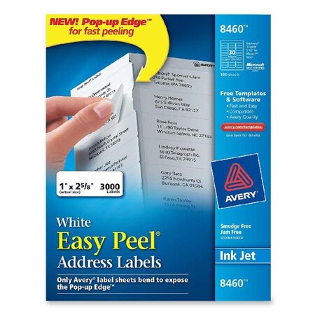 Avery 8460 Address Labels - Office Depot Avery® Easy Peel® White Inkjet Address Labels, 8460, 1" x 2 5/8", Box Of 3,000 Item #297977 4.8 (436) + 9 More 1 / 12 Description Specs Eco Conscious Take charge of all your mailing, shipping, identification and organization jobs with Avery address labels. Avery bright white labels blend better than basic labels on white envelopes.