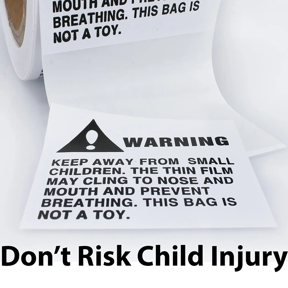 Suffocation Warning Bags - Interplas Suffocation Warning Label Requirements & Regulations. There are no federal laws which require warning labels on plastic (poly) bags. However, some states and a few municipalities have enacted their own legislation with regard to suffocation warning labels for plastic (poly) bags.Regulations stipulate If bag thickness is 1 mil the bag's dimensions need to be considered in conjunction with ...