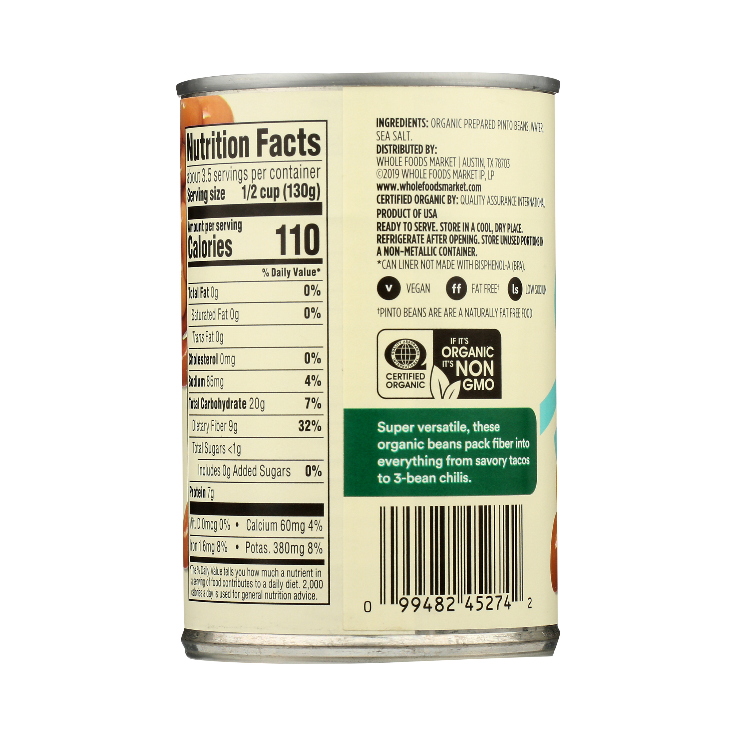 Pinto bean nutrition label