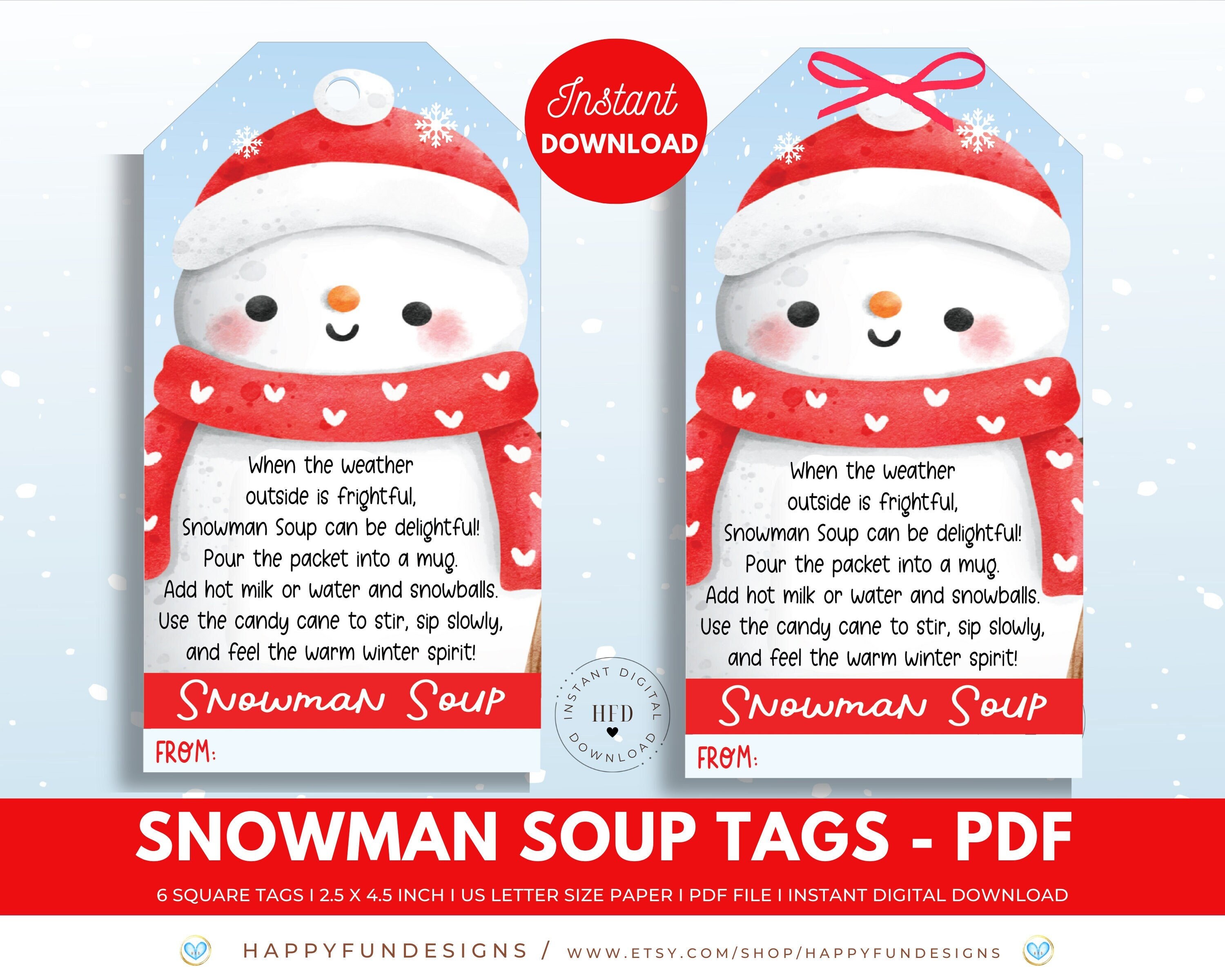 Snowman Soup Poem FREE Printable - Love The Day Jan 1, 2021 · 1. I have a snowman soup poem and treat for you today put together by the fabulous Glory of Glorious Treats! Have you ever met a person in which the moment you meet them you instantly adore them? That’s how it was when I met Glory of Glorious Treats. 10 Best Free Printable Snowman Soup Labels - printablee.com Dec 23, 2021 · Making your own snowman soup labels is pretty easy and you can even make this as an activity with your kids as well. On the labels, you can write down the sweet warm messages you like. As an example, sending your warmest hug through the stirring hot chocolate and marshmallow on each sip. 10 Best Snowman Soup Printable Labels - printablee.com Dec 23, 2021 · Snowman soup labels is a label to seal a packet of small Christmas treat consisting of hot chocolate mix, chocolate candy, marshmallow, and candy cane. Snowman soup is depicted as a treat from Snowman because it is warm, sweet, and fun. Although Snowman is cold, he still wants to keep you warm.